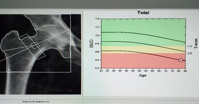 當骨質密度下降至T score低於-1.5時,骨折風險便會開始上升。需要注意的是,骨質密度只是影響骨折風險的其中一個因素,其他風險因素還包括年齡、家族中是否有髖關節骨折病史、自身是否患有糖尿病、甲狀腺功能亢進或類風濕性關節炎等慢性疾病,以及過往是否有骨折記錄等。