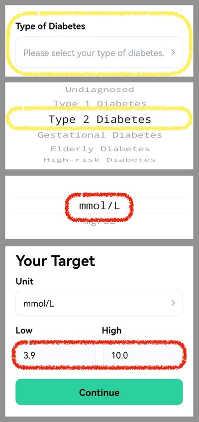 - 選擇糖尿病類型(如圖):沒有糖尿病,一型糖尿糖,二型糖尿或妊娠糖尿